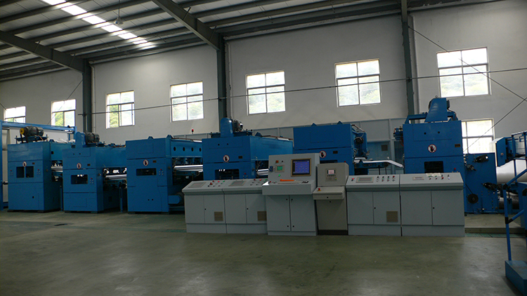 本生產線主要包括布邊角料開松機、棉箱、梳理機、鋪網機、針刺機、分切成卷機。采用服裝廠、制鞋廠、被服廠等布邊角料為原料,經開松、梳理成網、針刺、成卷而制成的具有一定拉力的纖維氈。該氈主要用于溫室大棚保溫,水產養殖、禽畜飼養,遮蓋混凝土精制品,沙發、床墊內用襯布,汽車內飾用布,蒙古包防寒用門簾等。