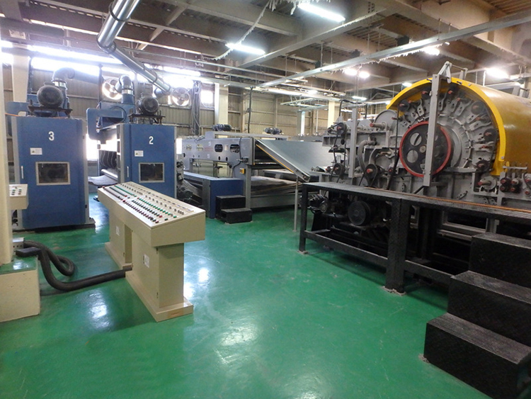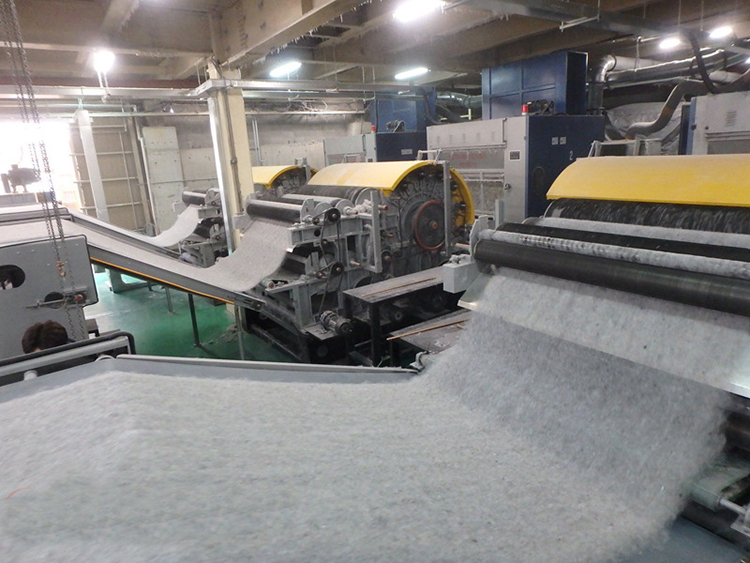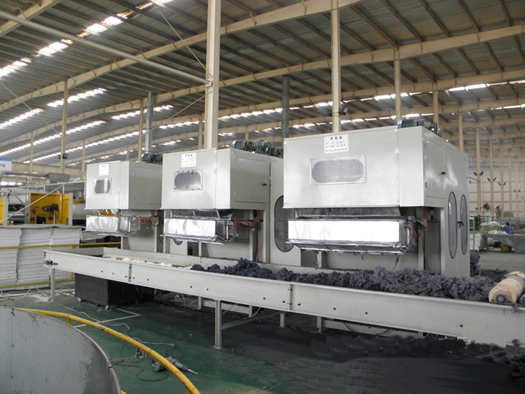流程:開松機-棉箱-梳理機-鋪網(wǎng)機-預刺機-倒刺機-倒刺機-主刺機-成卷機;